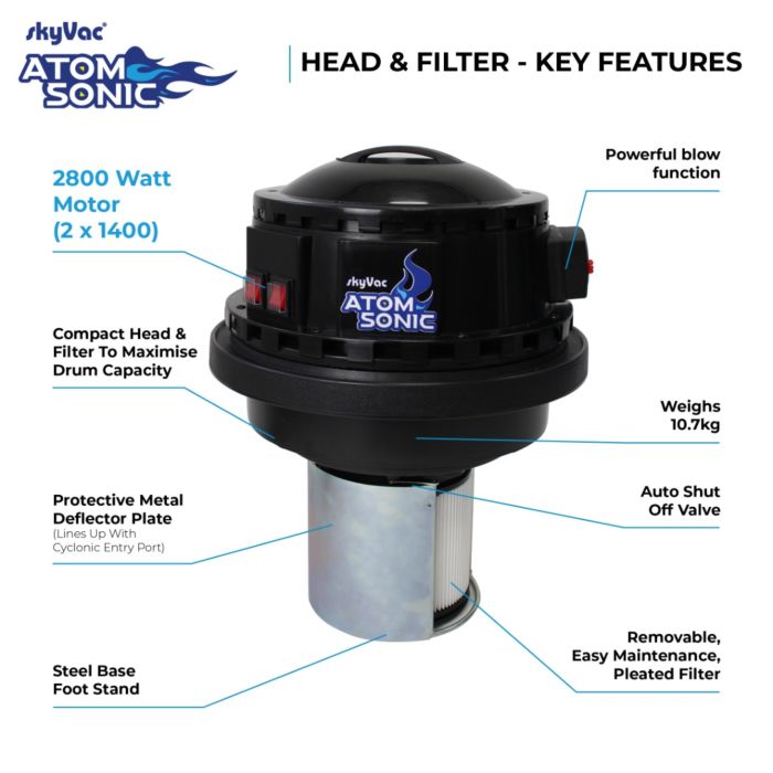 L'Atom est également une tête à moteur unique de 115 V, 15 ampères avec un seul bouton.