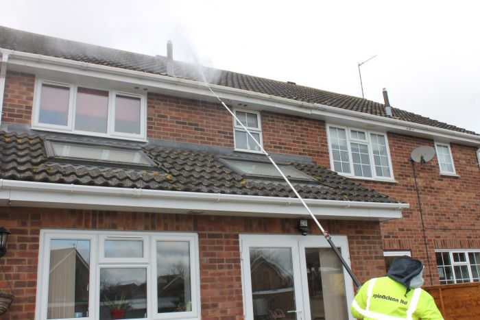 Il n'est pas nécessaire d'utiliser des échelles ou des équipements d'accès en hauteur avec cette lance télescopique, il suffit de la fixer à votre nettoyeur haute pression existant pour nettoyer jusqu'à trois étages de hauteur (24 pieds).